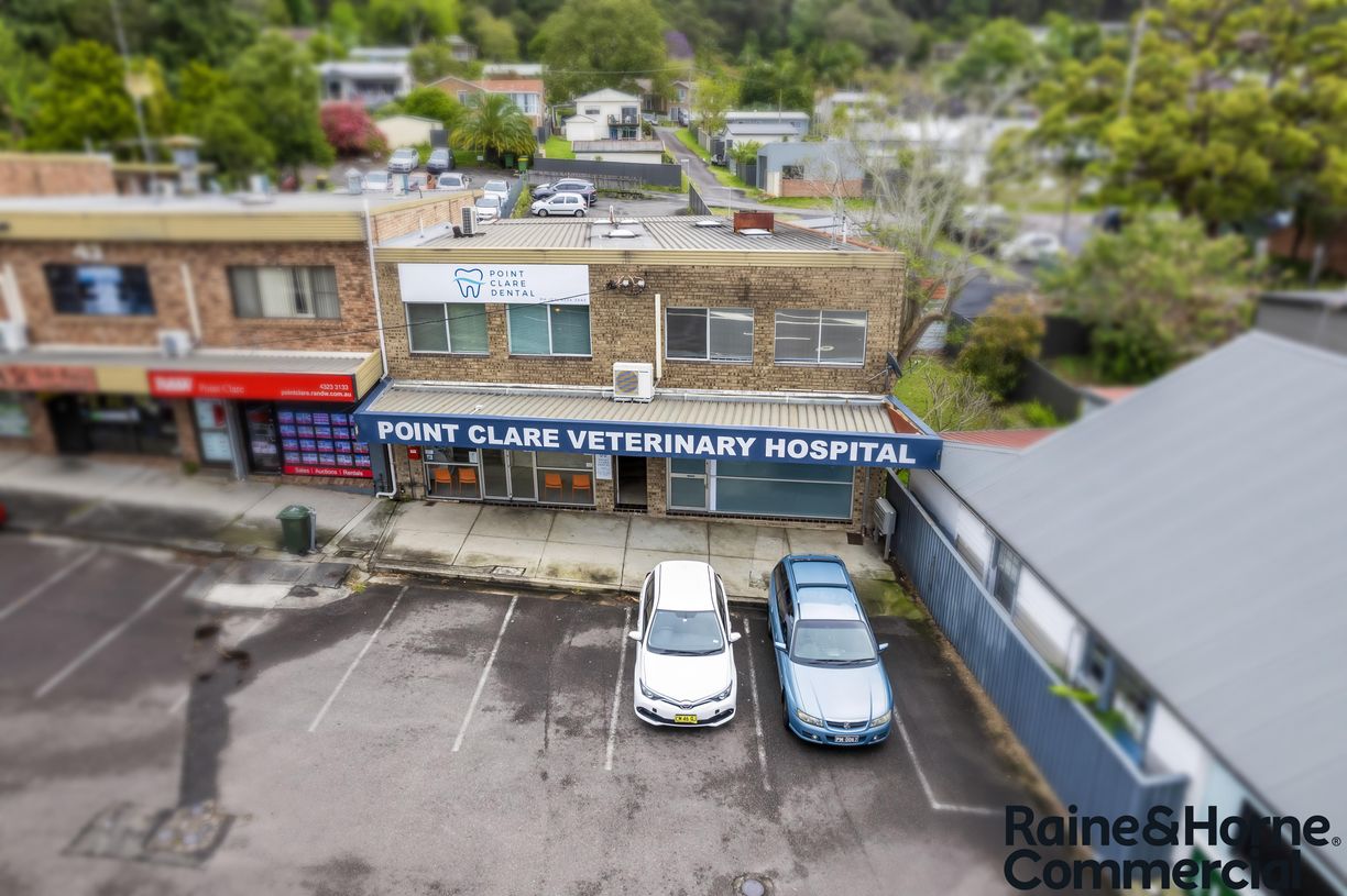 A freestanding two-storey brick building with 4 separate tenancies. The anchor tenant is Point Clare Veterinary Hospital.