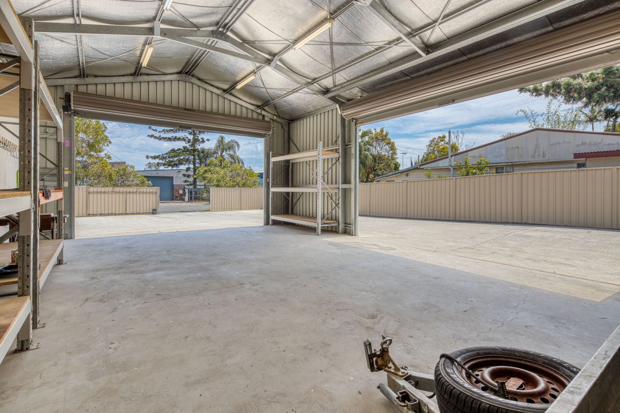 - 90sqm* storage shed with two 5m wide electric roller doors